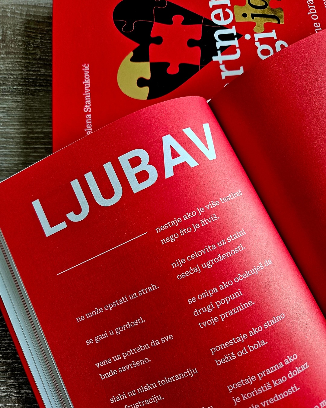 Zadatke sam pisala tako da vode čitaoca korak po korak, od razumevanja, preko emocionalnog osvešćivanja, do konkretnih promena u ponašanju i komunikaciji. Ko se upusti u taj proces, najčešće ne menja samo odnos sa partnerom, već i odnos prema sebi: više samoprihvatanja, manje reaktivnosti, više mira. Drugim rečima, rezultat nije „savršen odnos“, već jasniji osećaj sebe i to je uvek najbolji početak svake ljubavi.