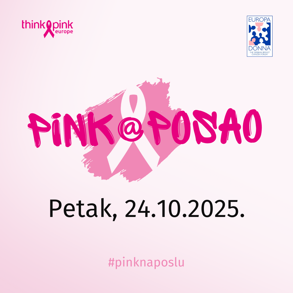 Ružičasti oktobar obeležile su brojne inicijative i kampanje koje su imale zajednički cilj – podizanje svesti, solidarnost i podrška borbi protiv raka dojke. Globalni simbol ove borbe je nošenje roze trake kojom se šalje poruka zajedništva i važnosti prevencije, te ranog otkrivanja raka dojke. Upravo zbog toga, Evropa Dona Srbija i RFTC tim upućuju poziv za priključenje akciji Pink radni dan, a to znači samo jedno. Narednog petka – odnosno 24. oktobra – svi nosimo roze boju.