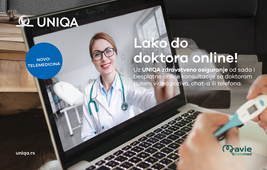 UNIQA osiguranje je uvela nov, potpuno besplatan servis za sve nove korisnike UNIQA privatnog zdravstvenog osiguranja. Reč je o Telemedicini, odnosno online konsultacijama sa doktorom. Uz uslugu Telemedicine možete da dobijete medicinske savete i i konsultacije iz udobnosti svog doma, u terminu koji sami birate.