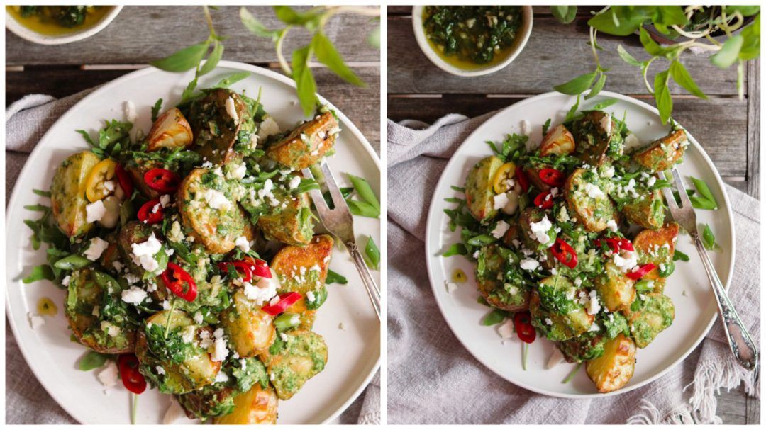 Ovo je definitivno jedna od naših omiljenih kombinacija – slatki pečeni mladi krompir s osvežavajućim pestom od rikole i indijskih oraščića. Savršena letnja večera koju možete jesti samostalno ili poslužiti kao bogati prilog. Uveravamo vas da na ovo jelo niko neće ostati ravnodušan!
