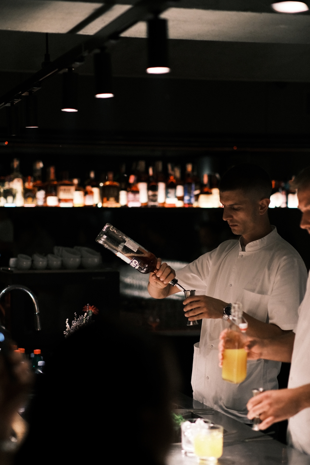 Od 17 sati Dragoljub prelazi u večernji ritam, kada bar i kuhinja zajedno kreiraju poseban doživljaj. U saradnji sa Vladimirom Simićem i školom Bartenders710, razvijen je koktel program koji spaja lokalne sastojke sa modernim tehnikama miksologije. Od koktela sa lipovim medom beogradskih pčela do White Manhattan-a sa belim bermetom. Uz njih dolaze pažljivo osmišljeni zalogaji poput mangulica larda, tosta sa puterom od koštane srži ili vafla sa brizlama, stvarajući atmosferu koja se lagano pretvara u intimni večernji vajb, baš u duhu kafane ispričane na nov način.
