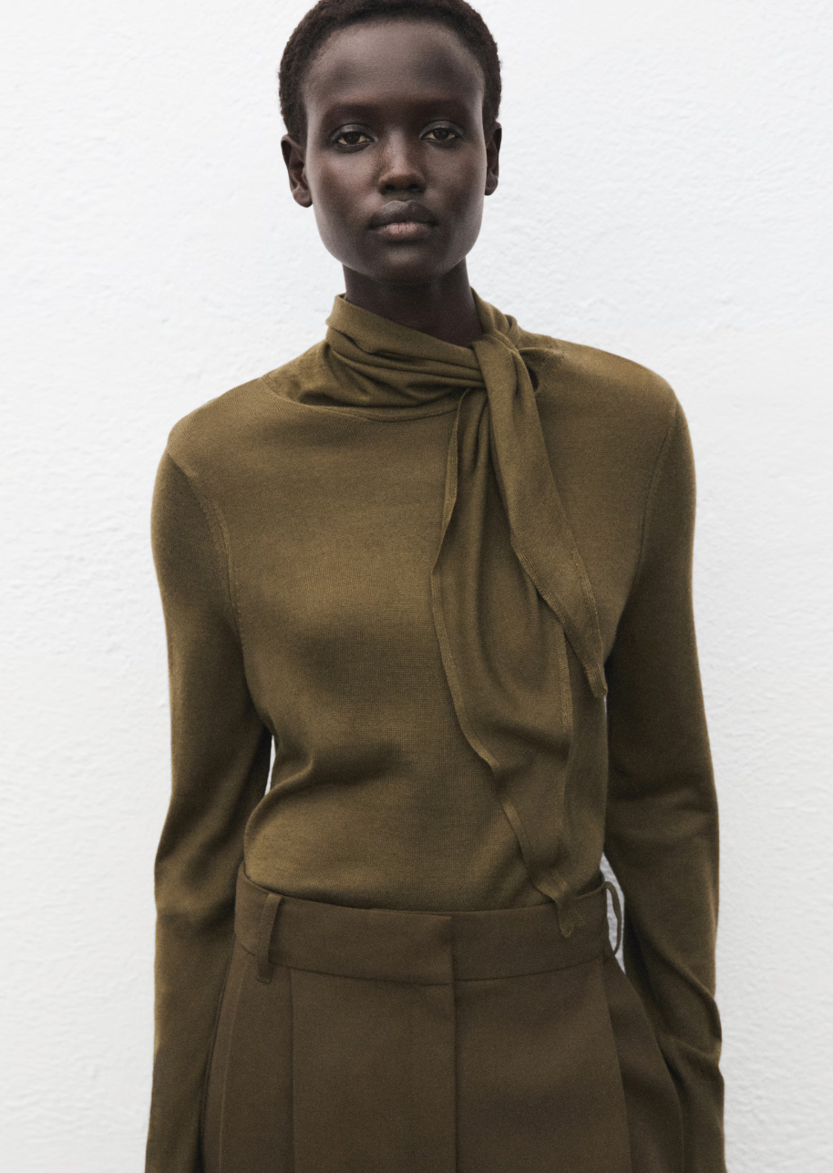 On je savršeni spoj estetike i praktičnosti – estetika šala i njegova praktičnost sa esencijalnim komadom – džemperom. Džemper i kardigan sa šalom predstavljaju jednostavni upgrade bazičnog komada. Sve je počelo od brenda Toteme koji je 2021. godine predstavio viralnu jaknu sa šalom. Ista je očarala modnu industriju, a bilo je samo pitanje vremena kada će se ovaj trend preliti i na druge odevne komade. Detalj u vidu šala unosi dodatni šik, sofisticirani element odevnoj kombinaciji. Budući da je fokus na tom odevnom komadu, gledajte da ga kombinujete uz minimalističke farmerke, pantalone ili suknje. Iako je reč o zaista minimalnom detalju, promena je instant primetna i efektna.