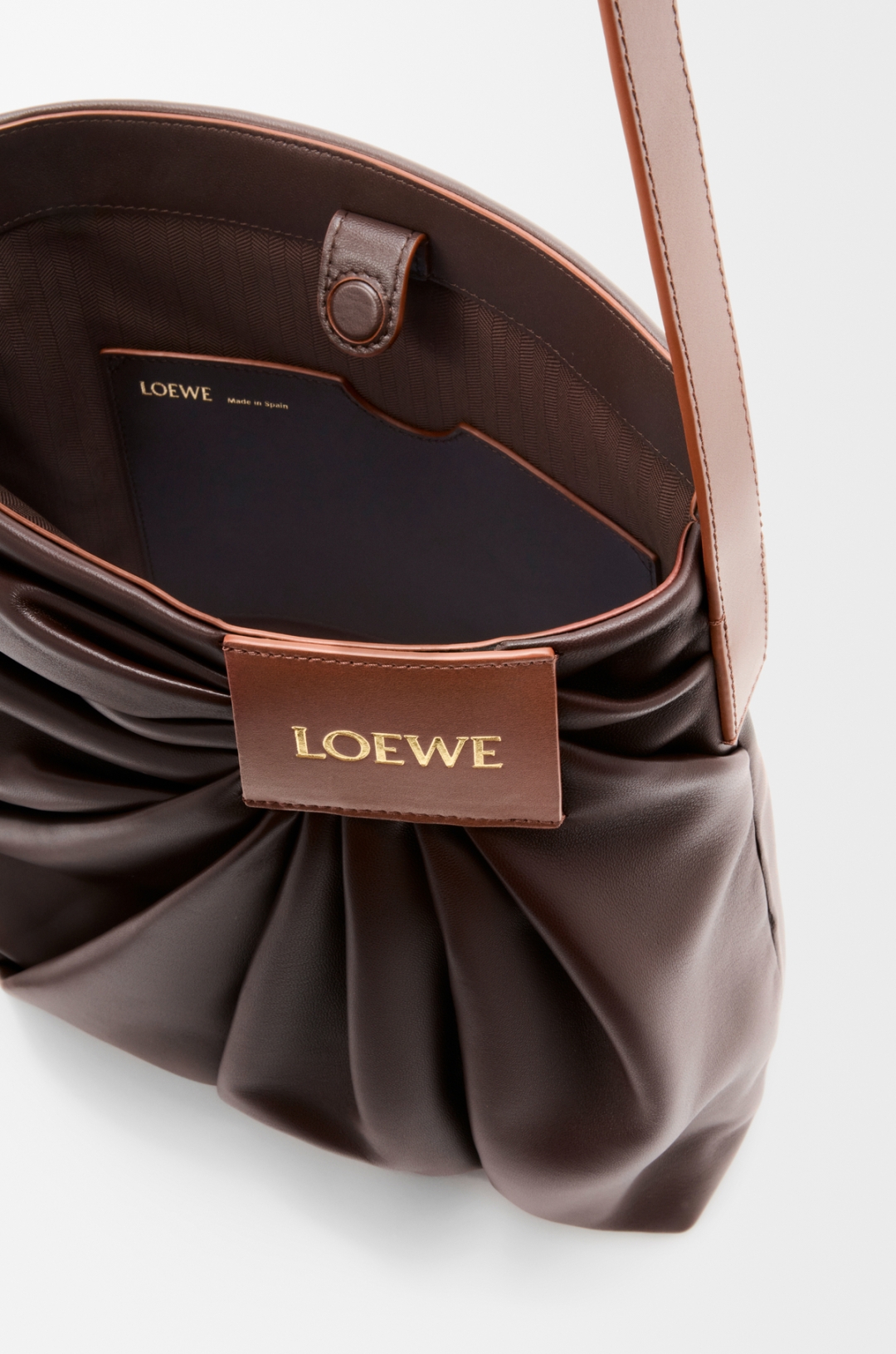 Pre torbe, LOEWE je predstavio Draped jaknu, komad koji je uveo novu interpretaciju kožne odeće. I zaludeo scenu. Vodeći se istom mišlju, Draped tote model preuzeo je prepoznatljivu logiku: forma torbe deluje kao spontano savijanje materijala. Više kao rezultat pada nego konstrukcije. Ta povezanost nije vizuelno kopiranje, već konceptualni kontinuitet — potvrda da torba i jakna pripadaju istom misaonom okviru, što joj daje dodatnu vrednost kao delu šireg dizajnerskog narativa.