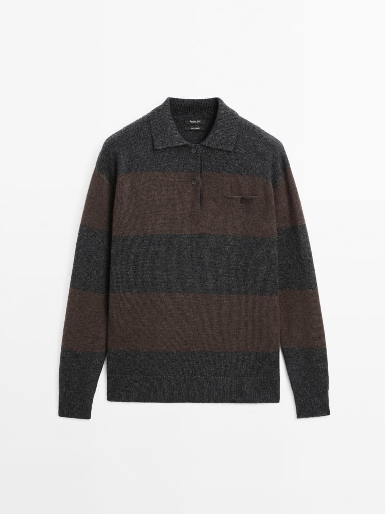 U pitanju je džemper od stoprocentnog kašmira koji poseduje trendi kragnu i pruge koje su sada sve popularnije. Reč je o modelu koji poseduje kombinaciju tamnosive i tamnobraon boje, koje su ujedno na vrhuncu jesenjeg kolora. Ukoliko niste ljubitelji pruga, džemper dolazi i u boji čokolade. Pored toga što je veoma udoban i kvalitetan, ovaj džemper će ubrzo postati vaš svakodnevni staple – onaj komad u ormaru za kojim neprestano posežete.