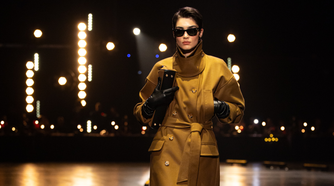 Na pisti dominiraju dugi kaputi koji prate liniju tela, naglašeni struk i oštri reveri, stvarajući utisak samouverenosti i luksuza. Paleta boja je sofisticirana: Karamela, konjak, maslinasto zelena, tamna čokolada i klasična crna. Ženski komadi balansiraju između strogoće i senzualnosti – oversized kaputi se kombinuju s visokim čizmama, kožom i providnim topovima. Muška kolekcija donosi klasične kapute, puffer jakne i shearling modele, sve stilizovano s dolčevitama, elegantnim pantalonama i torbama koje daju poslovni, ali izrazito moderan izgled.