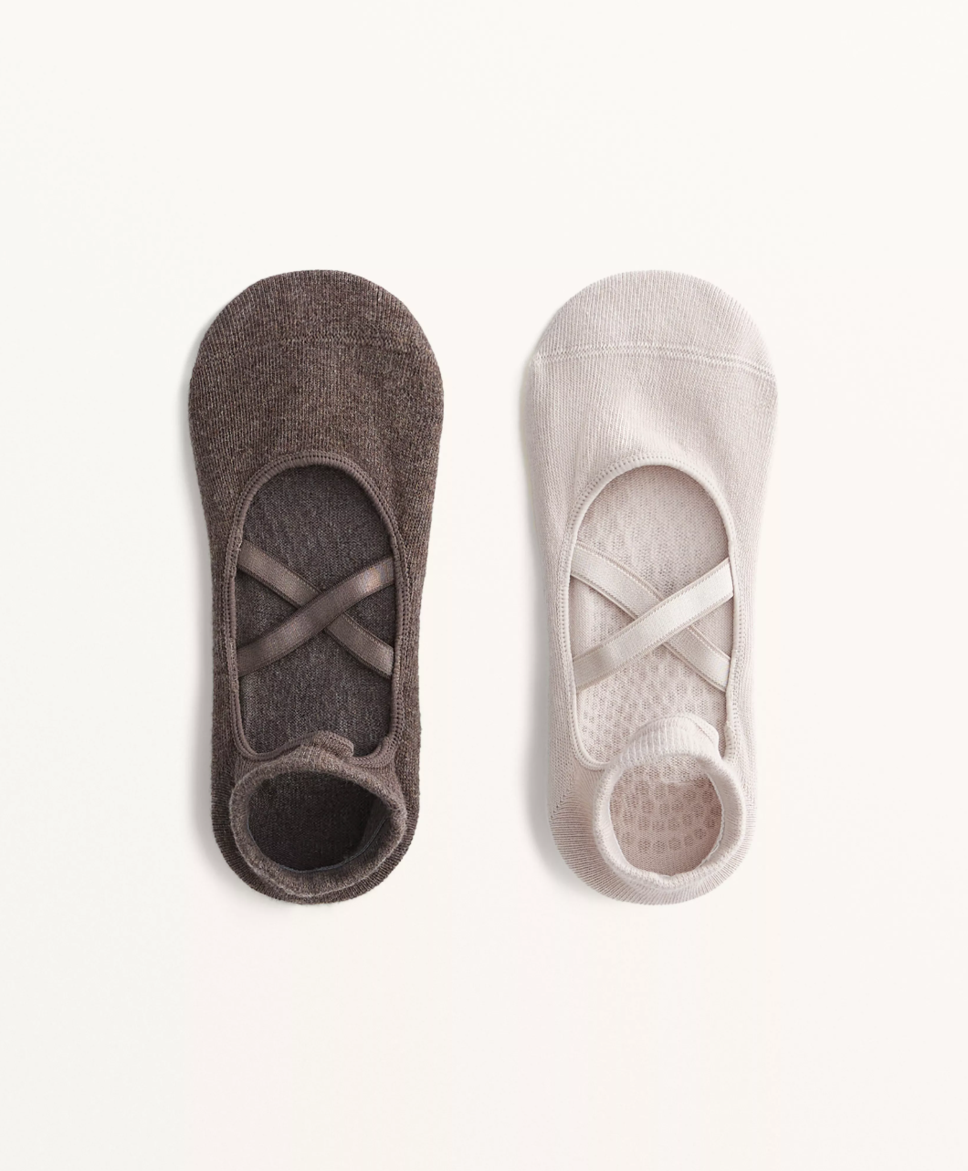 Grudnjak koji je integrisan u majicu garantuje udobnost i stabilnost tokom brojnih vežbi, a rebrasti detalji sa strane unose dinamiku i inače minimalistički komad. Još jedan sportski grudnjak – nešto lakši, ali i dalje sa korpama i punjenjem – je na našoj wishlisti. Ono što nam se kod njega dopalo, pored dizajna, jeste i boja – prelepa nijansa narandžaste. Helanke, ovog puta ne u zvonastom stilu, već uske, u teget boji, su takođe odličan izbor. Za nešto ležerniji, a opet aktivan momenat, biramo pamučnu sivu trenerku. Ako ste u pilates ili joga eri, poslednje dve stvari će vam biti od koristi. Prve su čarape specifično dizajnirane za jogu i pilates, sa dve ukrštene elastične trake. Silikon na đonu sprečava pomeranje – i tako su ove čarape idealne za ovaj tip vežbi, kao i reformer mašine. Na kraju, simbolično, tu je i traka za istezanje – obavezna stvar za početak i kraj svakog kvalitetnog treninga.