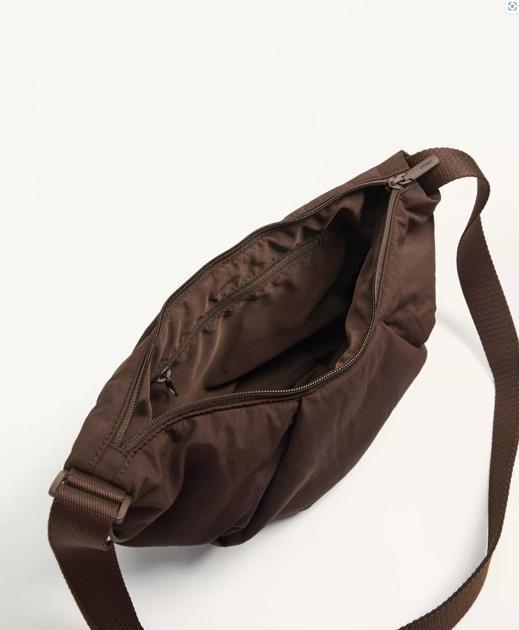 Lagana tkanina, nepropusna za vetar i prozračna. Sertifikovana da izdrži temperature do -20ºC za umerenu aktivnost. Kako su hladni dani uveliko tu, morali smo da izdvojimo i nešto deblji komad. Ovoga puta, to je braon džemper asimetričnog oblika, prelepog rebrastog materijala. U braon stilu, tu su i joga kocke – esencijalne ako preferirate trening od kuće. Tu je i šuškava jakna koju možete nositi i po kiši, kao i savršeno šik i udobne patike (za trčanje). Ako ste (kao i mi) zaljubljeni u čuvene Uniqlo torbice u obliku polumeseca, Oysho takođe ima svoju verziju. To je torbica u koju sve stane – verujte nam.