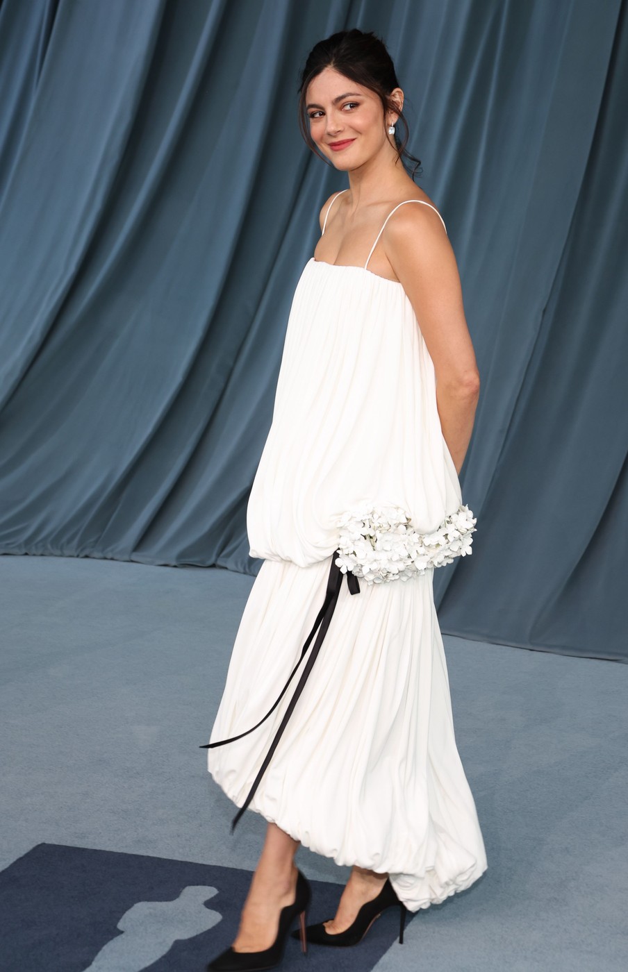 Monica Barbaro je dolaskom Jonathan Andersona postała Dior devojka. Za Academy Museum Galu 2025 glumica je odabrala elegantnu i ženstvenu belu haljinu sa crnim mašnama i cvetnim detaljima. Odevnu kombinaciju upotpunile su chic crne salonke.