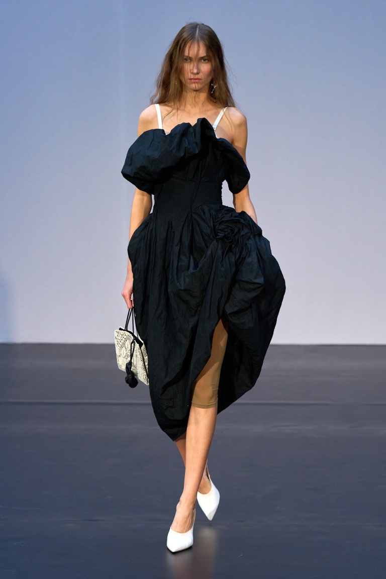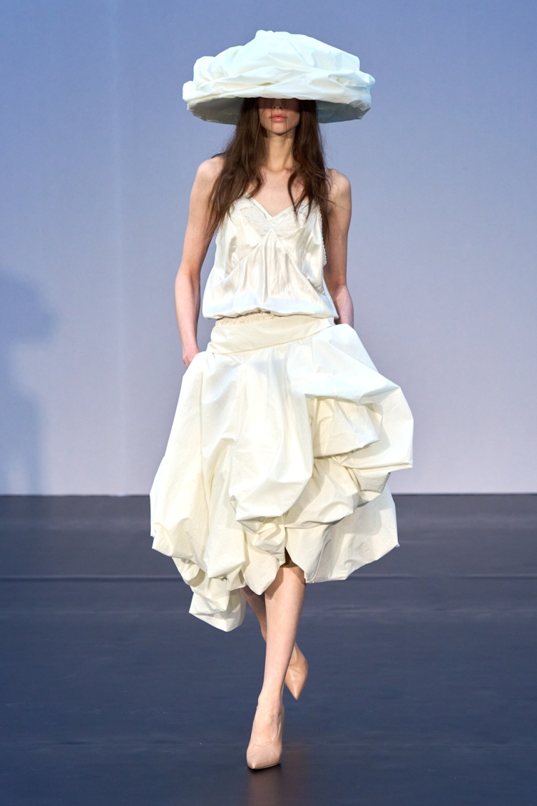 Slavic chic nastavlja da biva ključna inspiracija poljske dizajnerke Magde Butrym. Ovoga puta, njen obožavani motiv ruže koji vidimo na mnogim odevnim komadima, sada je bio završni detalj kroz velike šešire. Milje je uzelo mesto u kolekciji, što nas nimalo ne čudi jer čini DNK brenda, a nešto duže haljine od najlona bile su novina. Beauty trend koji nam je privukao pažnju su messy kose manekenki koje su ublažile glamurozne haljine.
