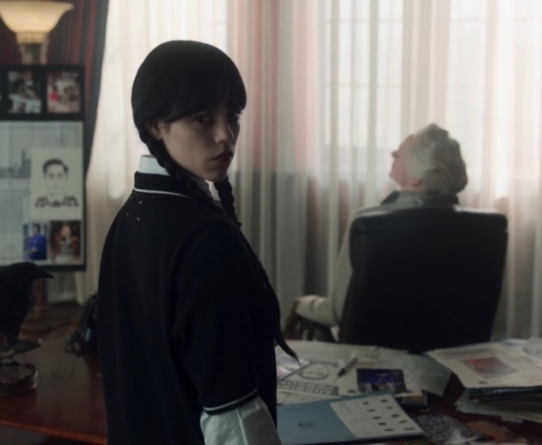 U tom spoju, Maison Margiela kroz materijal istražuje ono što je skriveno ispod površine, baš kao što Wednesday istražuje mračnu stranu sveta. Njena stroga silueta, odsustvo ornamenta i kontrolisana ekspresija deluju kao vizuelna manifestacija dekonstrukcionističkog principa. Istina se ne nalazi u celini, već u njenom razlaganju. Margielina haljina, svedena i prepravljena za seriju, postaje metafora introspekcije – spolja minimalistička, iznutra složena, gotovo hermetična.